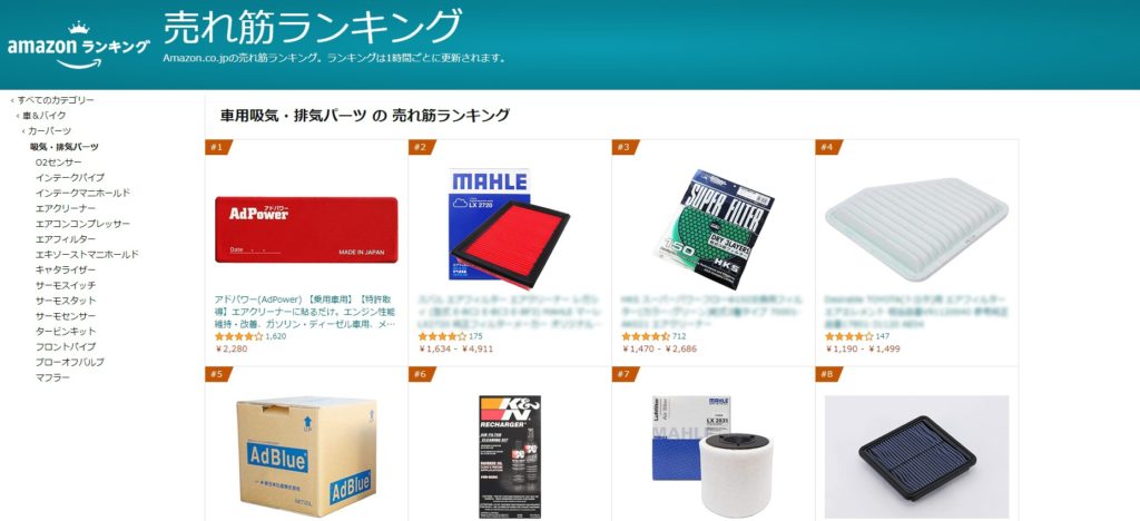 車用吸気・排気パーツ