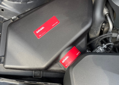 エンジンに繋がるエアダクト側のエアクリーナーボックスの上に貼り付ける。取付前に貼る場所を乾いた雑巾などできれいに拭き取ると、粘着性が高まります。なお一度貼ってしまうと、固定され貼り直しができませんので、ご注意ください。