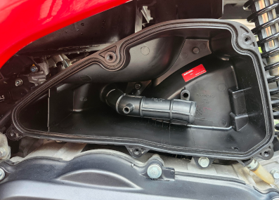 エアクリーナーはエンジン本体近くにあり、ホース状のエアダクトが付いている箱のような形状のものです。